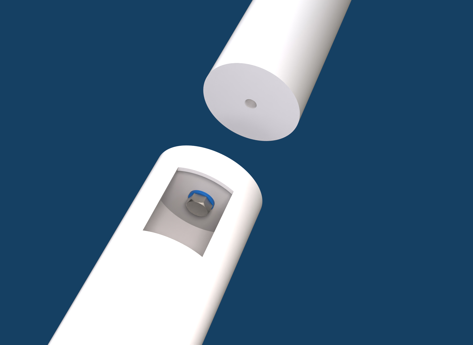 A closer look at the blind hole connection in the roof construction. On the opposite side of the hollow section, the bolted connection anchors into a solid material structure, rather than another hollow section.