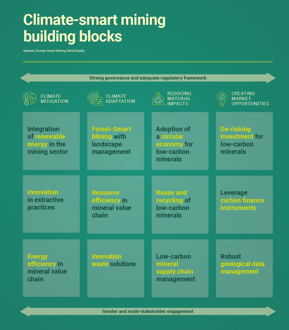 Many initiatives support positive development, such as the World Bank’s Climate-Smart Mining (CSM) Initiative. It champions “the responsible extraction, processing and recycling of minerals needed for low-carbon technologies by minimizing their climate and material footprints, from extraction to end-use, by scaling up technical assistance and investments in mineral-rich developing countries.”
