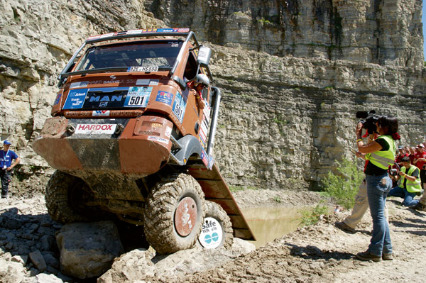 In a sweltering limestone quarry flanked by sheer cliffs rising 60 meters, a truck stands idling at the top of a near-vertical muddy incline. This hill is so steep that a daring skier would think twice before tackling it, but the driver edges forward and expertly guides his 13-tonne vehicle in a controlled skid towards a gate below that is only just wider than the truck itself.